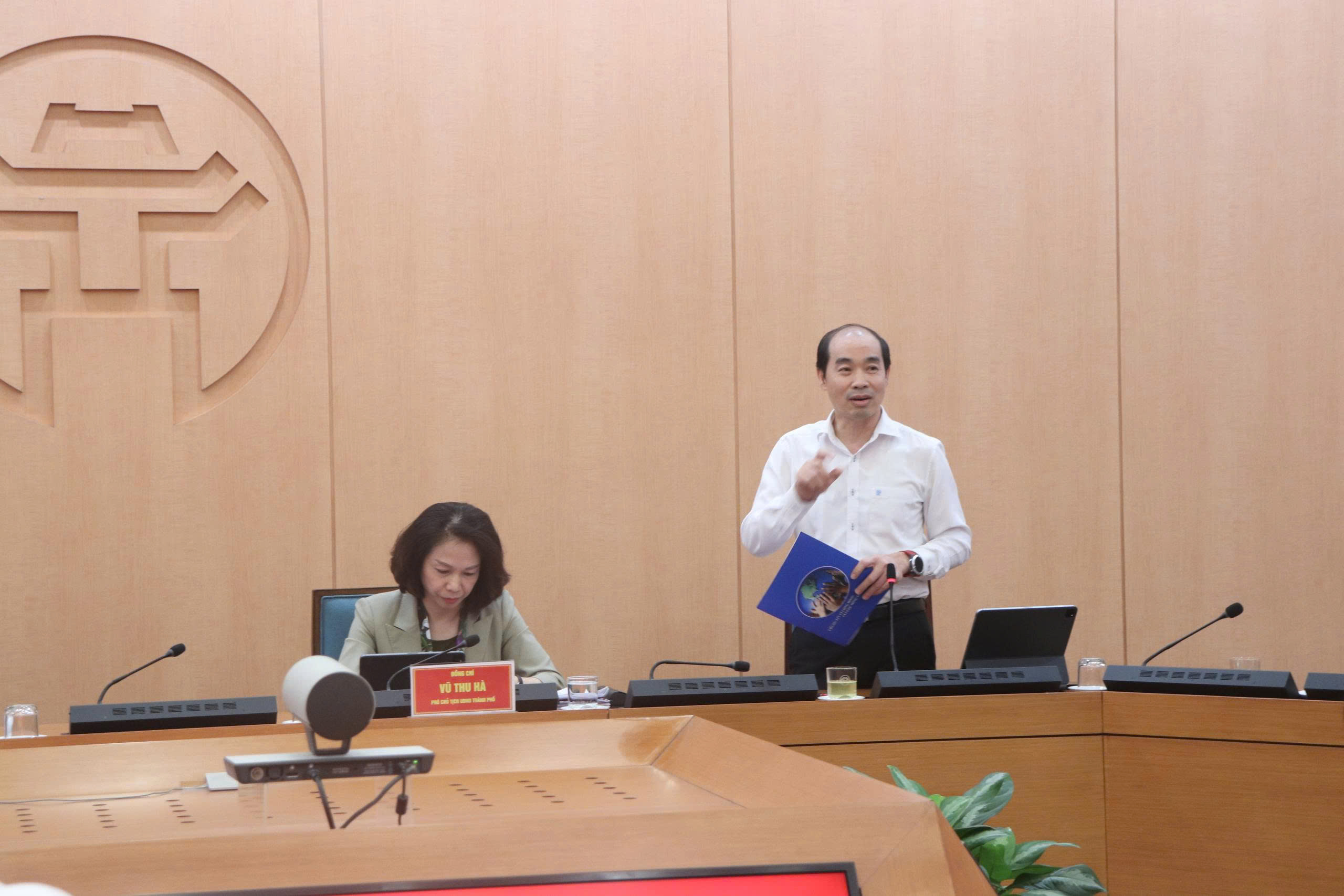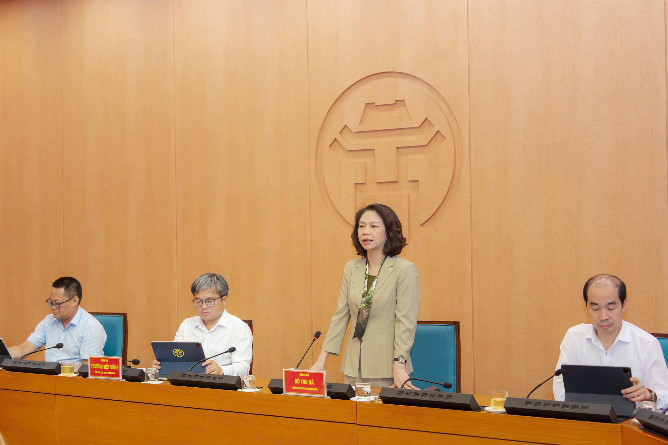 Phó Chủ tịch UBND Thành phố Hà Nội Vũ Thu Hà phát biểu tại hội nghị.